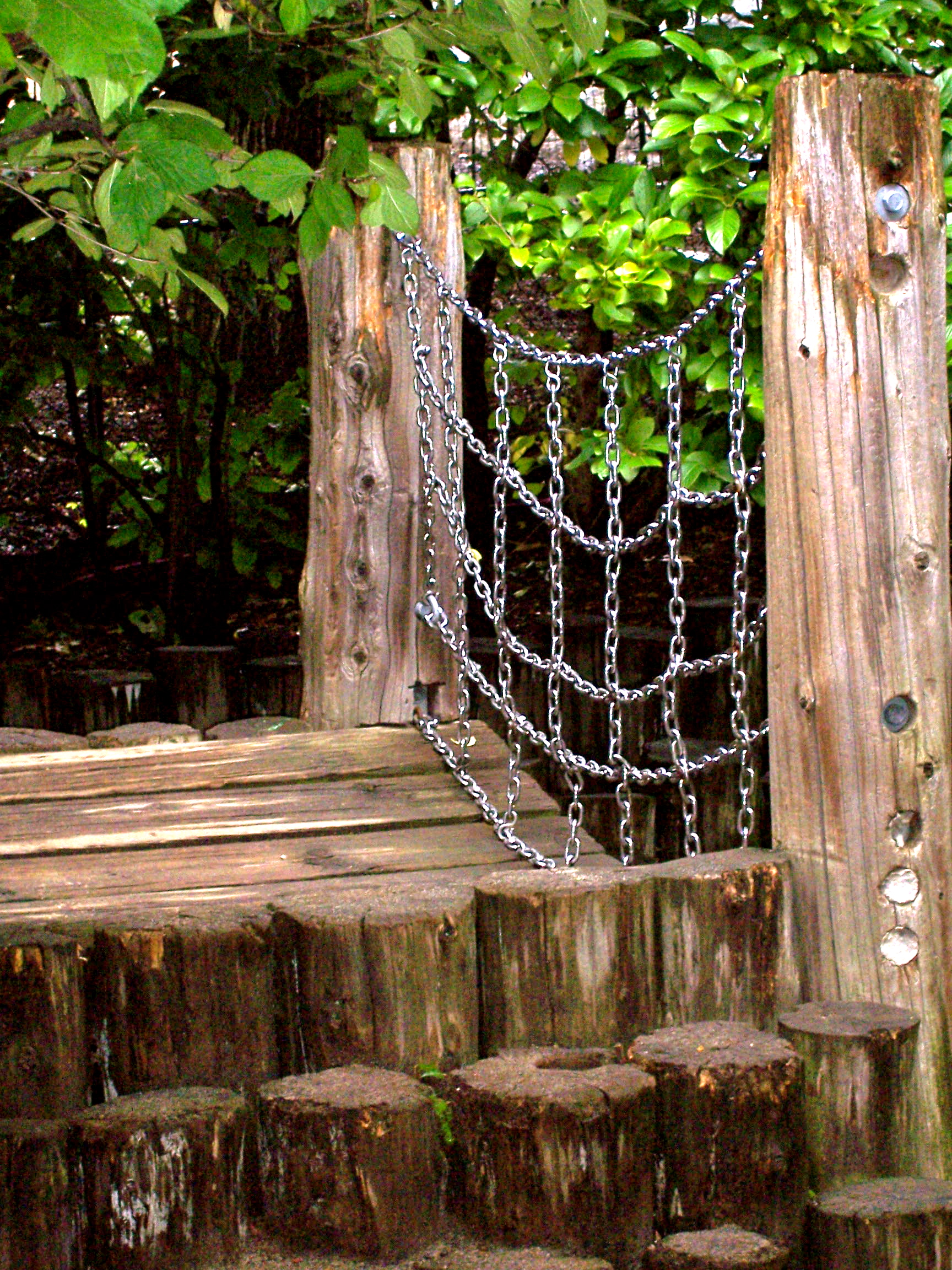 “I know,” I said, spying it. Of course, I took a picture with my trusty little Kodak. And then I saw them… bridges… bridges everywhere… in silver chain, lined with tree stumps and stones… some narrow… some you could never walk across your self as they bridged space and other dimensions, and the enchanted fairy realms. I had seen the sign that said, Children’s Zoo, but somehow had never been in there.